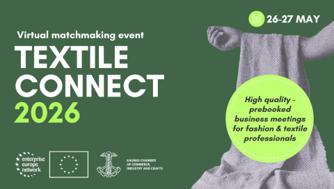 16/04/2026Το Textile Connect 2026, η διεθνής εκδήλωση δικτύωσης στον τομέα της κλωστοϋφαντουργίας και της μόδας, θα πραγματοποιηθεί στις 26 και 27 Μαίου με ψηφιακό τρόπο. Την εκδήλωση συνδιοργανώνει ο Σύνδεσμος Βιομηχανιών Θεσσαλίας & Στερεάς Ελλάδος (ΣΒΘΣΕ), εταίρος στο Enterprise Europe Network Hellas.