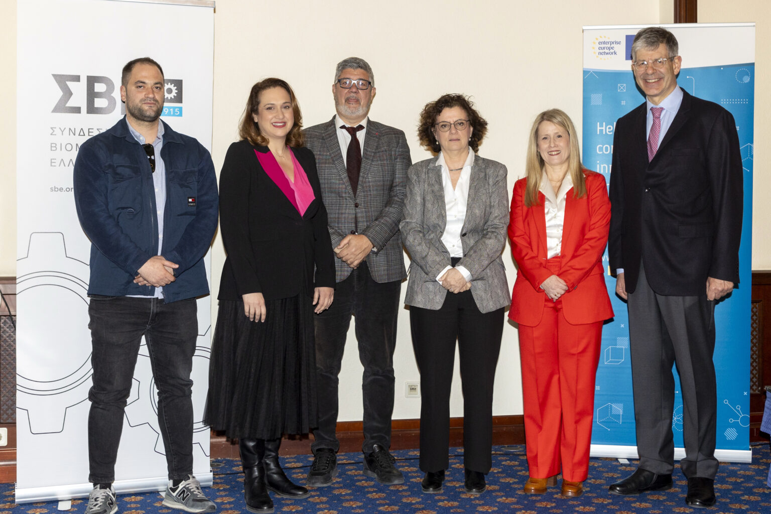 Ακολούθησε μια ζωντανή στρογγυλή τράπεζα με συμμετοχή εκπροσώπων επιχειρήσεων – μελών του ΣΒΕ, οι οποίοι μοιράστηκαν την εμπειρία τους μέσα από πρακτικά παραδείγματα. Οι Δημήτριος Θεοχάρης (ΜΑΚΕΔΟΝΙΚΗ ΕΤΑΙΡΕΙΑ ΧΑΡΤΟΥ – ΜΕΛ Α.Ε.), Κωνσταντίνος Κωνσταντινίδης (PELOPAC Α.Β.Ε.Ε.) και Ευάγγελος Παπαϊωάννου (BIOSOLIDS S.A.) ανέφεραν αναλυτικά τις υπηρεσίες που έλαβαν από το Enterprise Europe Network Hellas, που αφορούν στην ανταγωνιστικότητα και καινοτομία, την βιώσιμη ανάπτυξη και πράσινη μετάβαση, καθώς και τη διεθνή δικτύωση.
